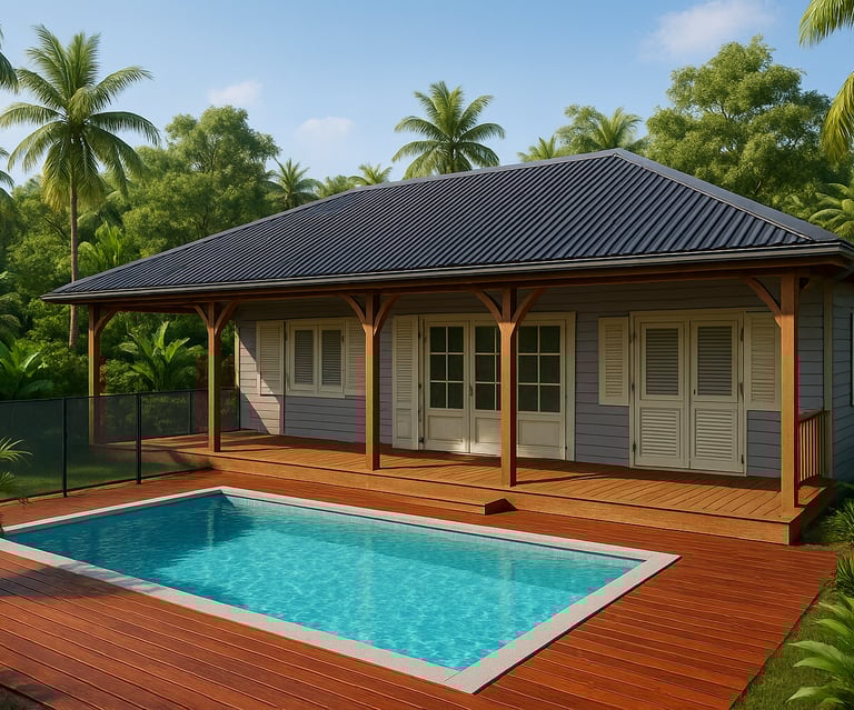 Toutes nos maisons sont construites en conception traditionnelles des Antilles avec un panneaux ,un pare pluie et un double bardage