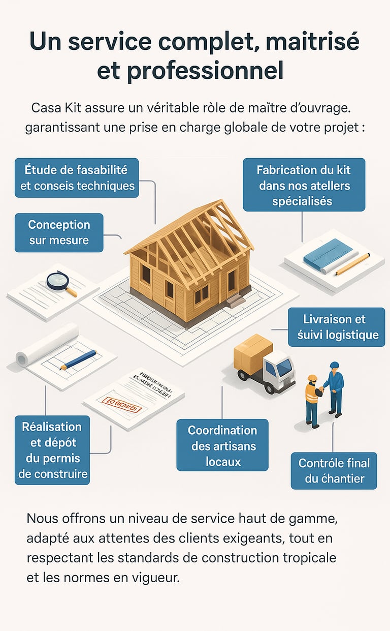Depuis plus de 25 ans, L'équipe de Casa Kit accompagne les particuliers et investisseurs dans la réalisation de maisons bois durables, modernes et parfaitement adaptées au climat tropical.